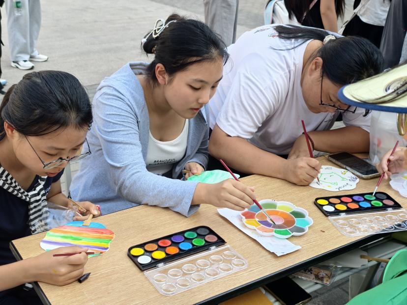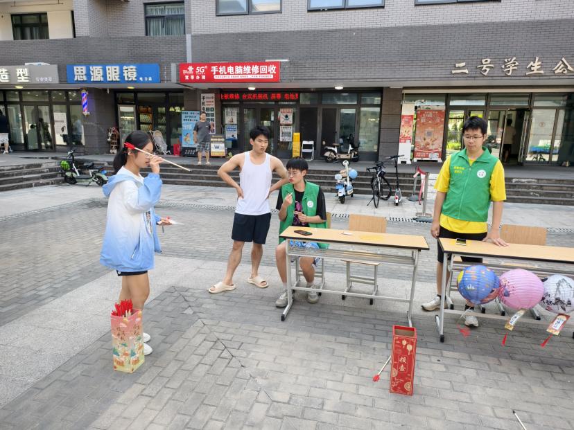 传统游戏焕新彩,诗词声里续传承。下午一点,活动在欢声笑语中开启预热。灯谜秘阁前,思索与顿悟间碰撞出智慧火花;团扇绘月处,每一笔勾勒都饱含对团圆的美好憧憬。投壶雅射场地内,箭矢中壶的清脆声响此起彼伏;而最动人心弦的,当属飞花令环节。诗词如流水在同学间接力传递,“露从今夜白,月是故乡明”“西北望乡何处是,东南见月几回圆”……一句句经典穿越千年时光,在年轻的嗓音中重焕生机。正如现场一位大一同学所言:“我们背过的诗,仿佛都在等今晚这样一个有温度的夜晚。”当日影西斜、暮色渐浓,午后的热闹与诗意并未消散,而是化作更温柔的期待——当星光点亮夜空,活动主场移至操场,一场以歌抒怀的月下音乐会,正静待师生赴约。