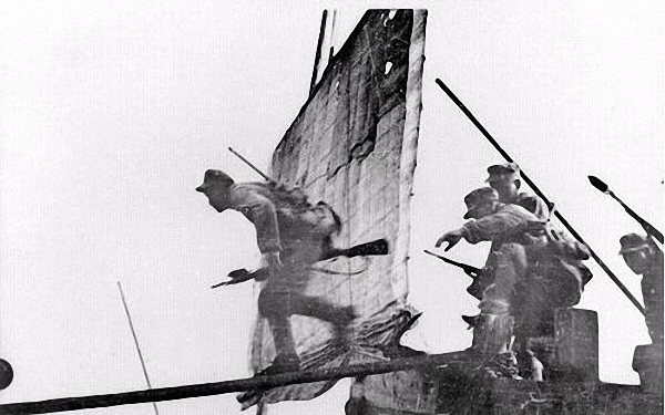 1949年4月20日午夜,随着三颗红色信号弹的发射,人民解放军分三路,以木帆船为主要航渡工具,强势地渡过长江。多名战士为此奋斗牺牲,并控制了江阴炮台,封锁了江面,致使国民党海军无法进入这段江域。
