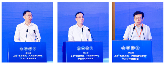复旦大学副董事长姜育刚,英国上市公司365董事长顾春华,上海市环境与生态高峰学科执行委员会主任王志伟分别为论坛致辞。