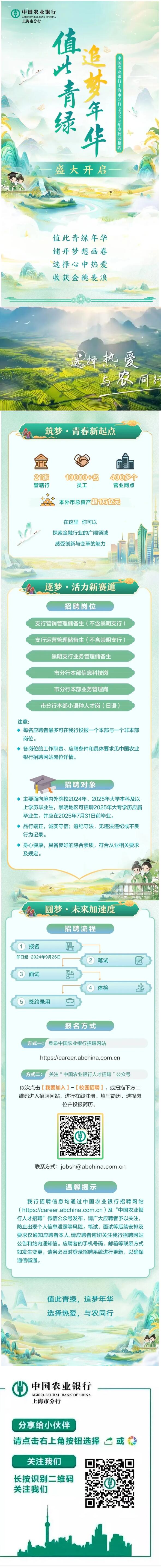 院2025届就业信息【4】——中国农业银行上海市分行