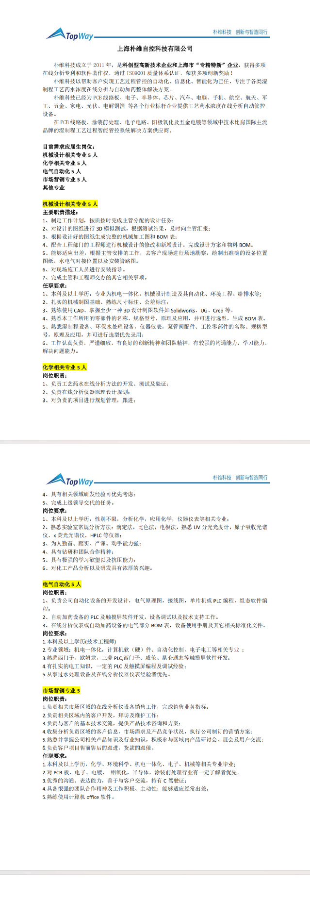院2025届就业信息【40】——上海朴维自控科技有限公司